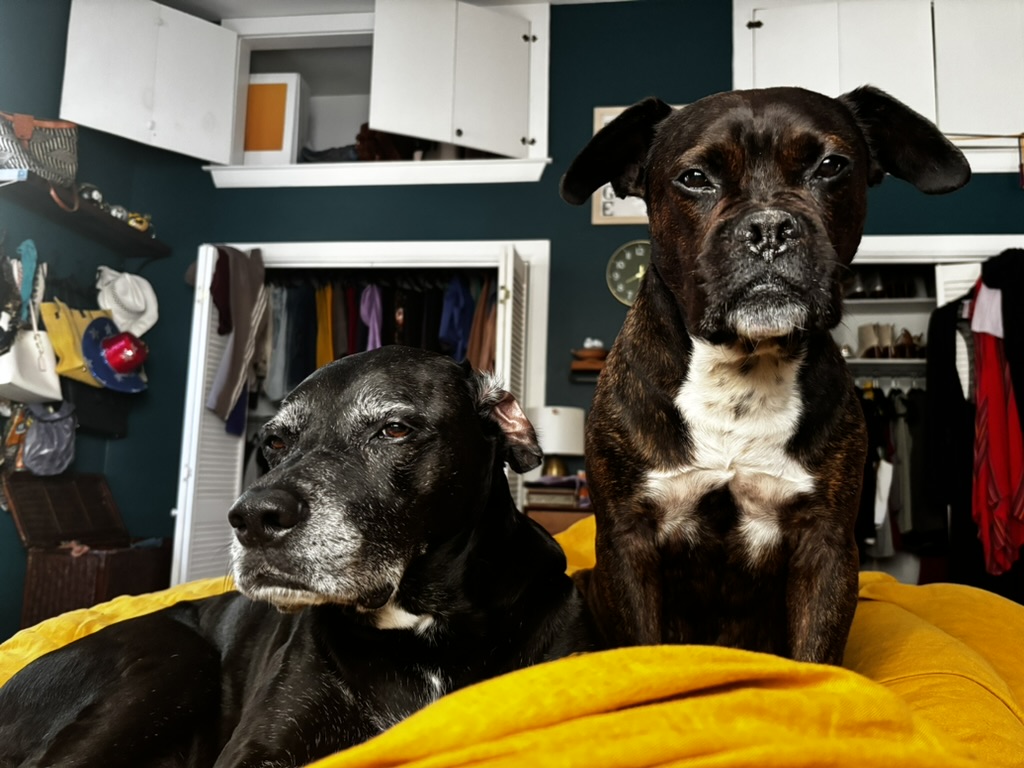 Two Dogs. 130 pounds combined. 1300 square feet of space divided into small rooms. They have a large yard to play in, but they prefer to wrestle indoors. They have their own beds, but they both choose to be up underneath me at all times. All of my interior and exterior spatial designs, organization, and arrangements force me to ask a few questions –