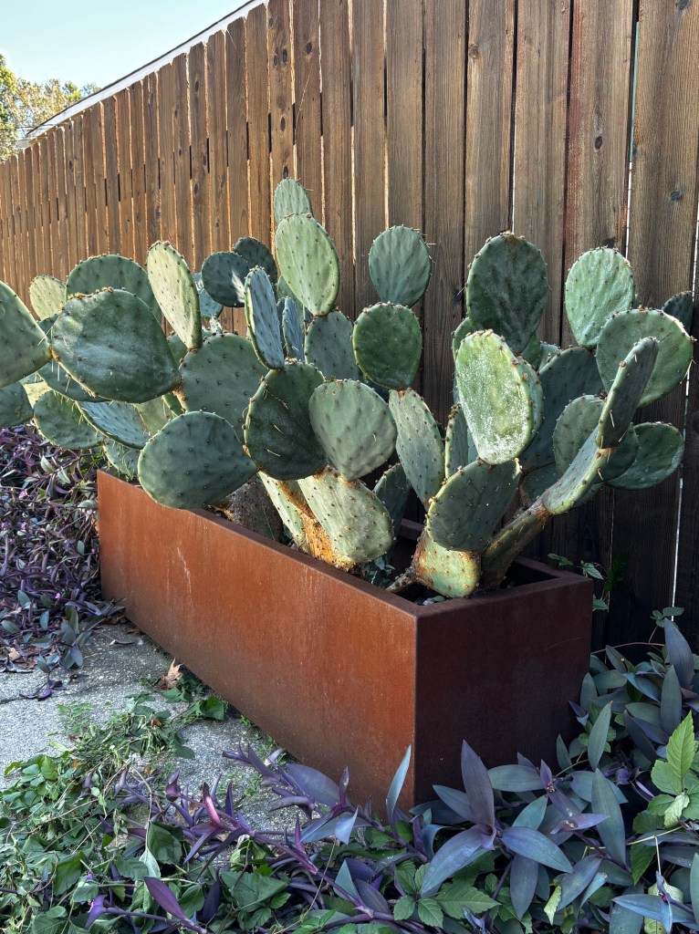 - I also bought a corten steel planter from Wayfair, 60” in length, closed bottom, for my cactus in 2020 at $330. Surprisingly the price hasn’t really changed over time. It comes silver, and as it sits in the elements, it develops the pretty rust color, but it’s not the destructive rust to worry about.