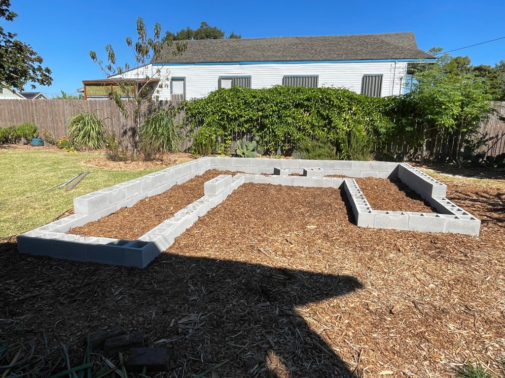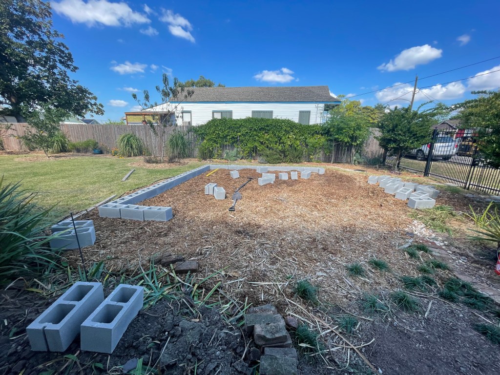 In 2024, I realized I didn’t like having one big U-Shaped bed because it limited access from the front to the back of my yard. That plus the sinking led me to take it apart and reconfigure the layout. I dug the dirt out of the sections where I wanted to create a path, removed the blocks, re-leveled the base layer, and then created four separate beds.