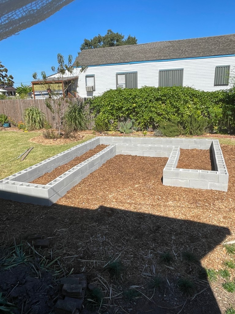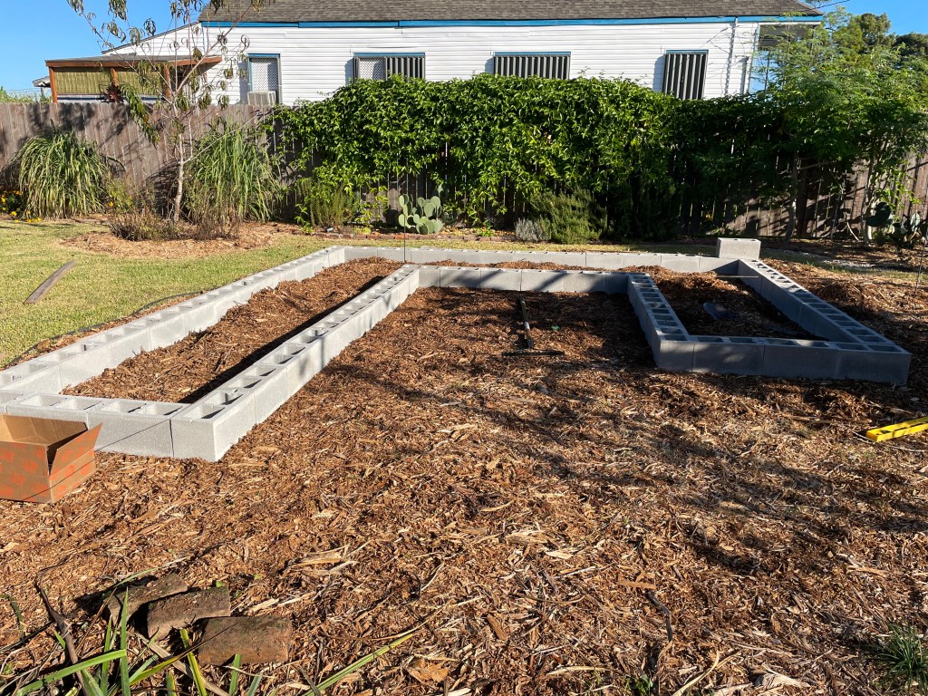When I was finally ready to foray into some serious planting, I went with concrete blocks, primarily because of the cost. The palette of concrete blocks (144 units), 10 bags of organic raised bed soil, 10 bags of black kow compost, 12 bags of sand, 35 bags of regular compost, 10 bags of top soil, a tube of construction glue, plus two deliveries totaled $810!!
