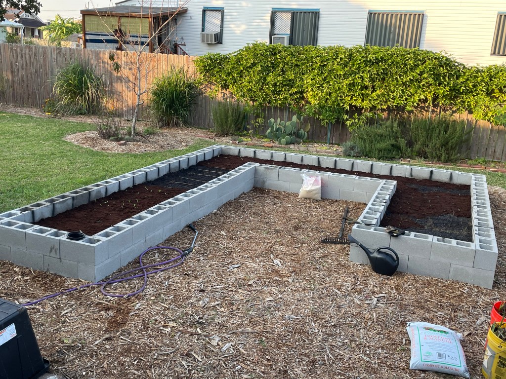That’s the dream, right? Snap your fingers and have 6 -10 capacious garden beds with enough height that you don’t have to break your back tending to them, within a quaint outdoor area where you can set up a table and chairs and marvel at the food you grow.